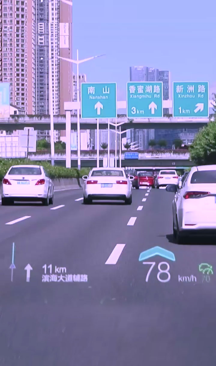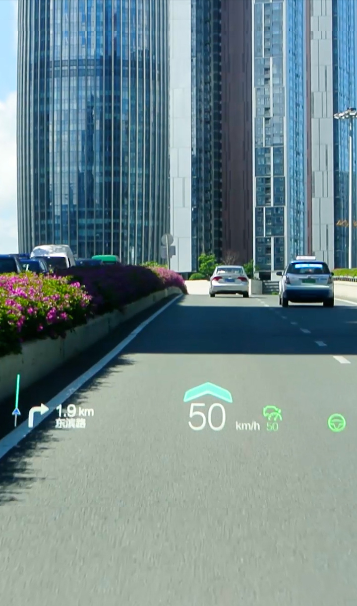 基于復雜變量環境完成大尺寸、小體積的光機設計,并采用多數據融合算法實現導航、ADAS等輔助駕駛信息在真實路況上的疊加、融合顯示,提升駕駛安全性的同時給予更酷炫、更智能的駕駛體驗。